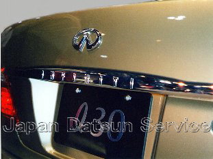 左 I35 トランクリッドフィニッシャー 各色 右インフィニティーマーク付きエンジンカバー マイナーチェンジ後VQ20エンジンに取り付け可 \ASK |